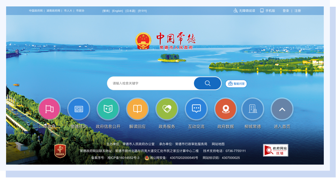 常德政府門戶網(wǎng)站是由常德市人民政府主辦,常德市人民政府辦公室、常德市行政審批服務(wù)局承辦,是常德市委、市政府對(duì)外發(fā)布政務(wù)信息、對(duì)相關(guān)政策文件進(jìn)行權(quán)威解讀、實(shí)現(xiàn)政民互動(dòng)、提供網(wǎng)上辦事服務(wù)的平臺(tái),也是宣傳展示常德形象的窗口。