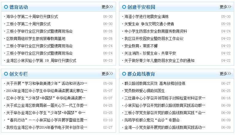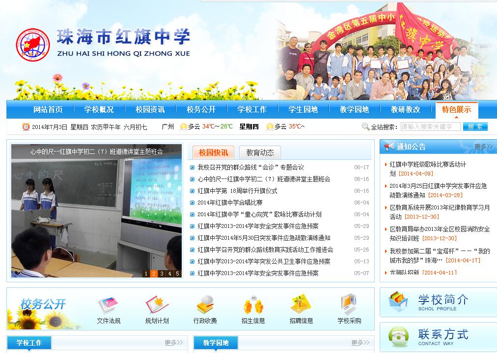 金灣區(qū)教育信息網(wǎng)整體設(shè)計(jì)簡(jiǎn)潔清新大方,體現(xiàn)出“一站式、一體化”的教育局集群網(wǎng)站平臺(tái)風(fēng)格。首頁(yè)集成信息公開、辦事指南,新聞公告等版塊,提供各應(yīng)用平臺(tái)的入口,同時(shí),注重用戶的良好體驗(yàn)(UI、UE)、網(wǎng)站頁(yè)面載入速度、網(wǎng)站管理人員易操作性。網(wǎng)站采用藍(lán)色、紅色為主色調(diào)的設(shè)計(jì)風(fēng)格,避免了以往很多門戶網(wǎng)站板著面孔、居高臨下的呆板模式。
