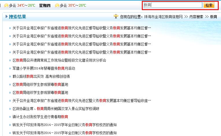 金灣區(qū)教育信息網(wǎng)設(shè)置強(qiáng)大的導(dǎo)航與搜索系統(tǒng),清晰的目錄結(jié)構(gòu),為用戶提供便捷、舒適的信息查詢環(huán)境。此外,金灣區(qū)教育信息網(wǎng)采用了動(dòng)易“全文搜索引擎”,全文檢索引擎具備多關(guān)鍵字搜索、關(guān)鍵詞組合搜索、全文檢索(對(duì)標(biāo)題與內(nèi)容同時(shí)檢索)等功能,能快速準(zhǔn)確地檢索到政府網(wǎng)站內(nèi)的所有信息,并對(duì)關(guān)鍵詞進(jìn)行高亮顯示。毫秒級(jí)的搜索速度,實(shí)現(xiàn)高速檢索,大大提升用戶在網(wǎng)站的檢索和查詢體驗(yàn)。