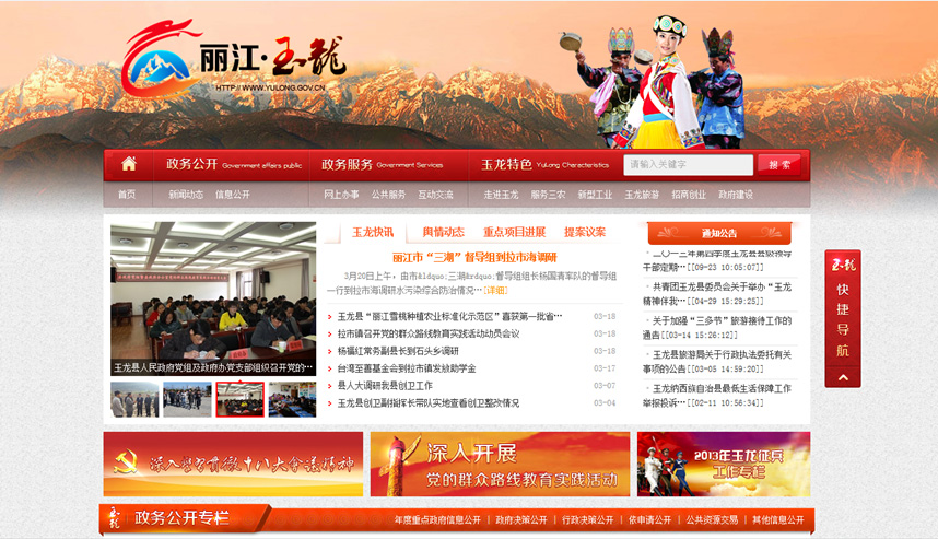 2013年玉龍縣人民政府與動(dòng)易進(jìn)行項(xiàng)目合作,對(duì)玉龍縣人民政府網(wǎng)站進(jìn)行改版。