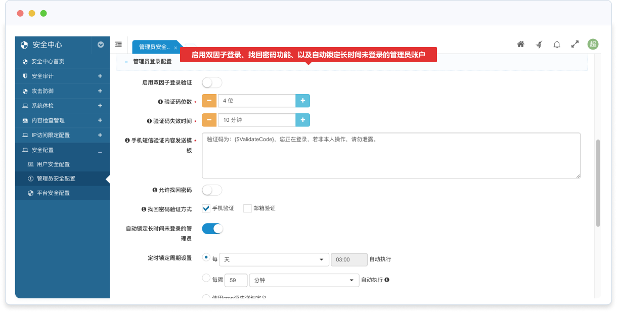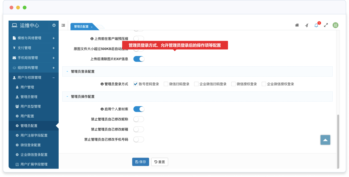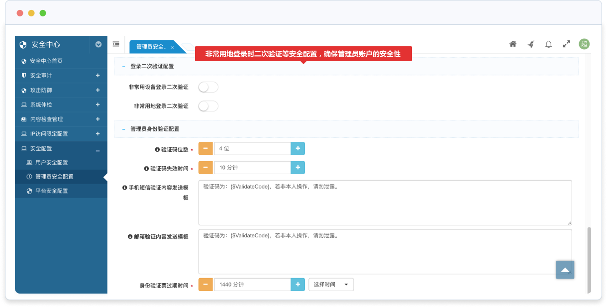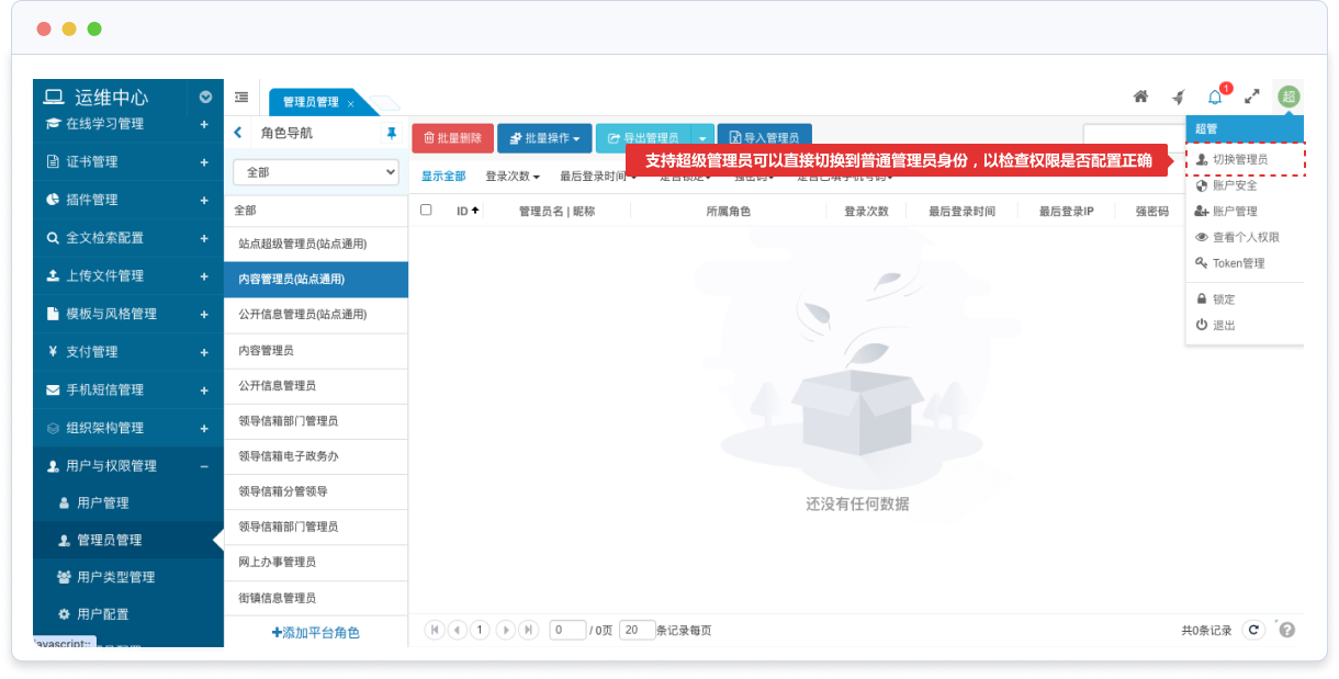 支持超級管理員可以直接切換到普通管理員身份,以檢查權(quán)限是否配置正確;