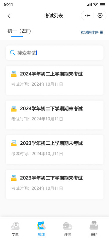 查看成績查看學(xué)生成績支持兩種模式:按考試查看允許查看學(xué)生在特定考試中的各科成績(包括總分和平均分);