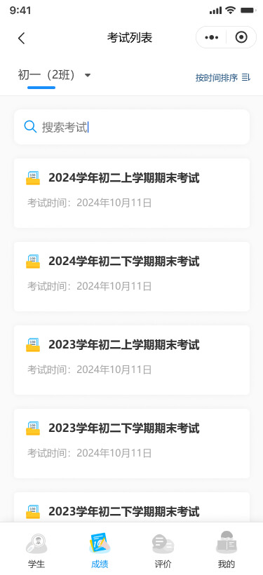 綁定學(xué)生后,即可查看學(xué)生的考試成績和綜合評價。一個用戶可以綁定多個學(xué)生,并提供學(xué)生身份切換按鈕。