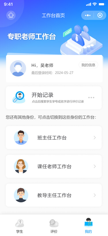可以錄入/查看學(xué)生的“嘉獎評優(yōu)、課堂表現(xiàn)、標(biāo)記曠課”等評價記錄,支持查看學(xué)生的基本信息、成績和綜合評價。
