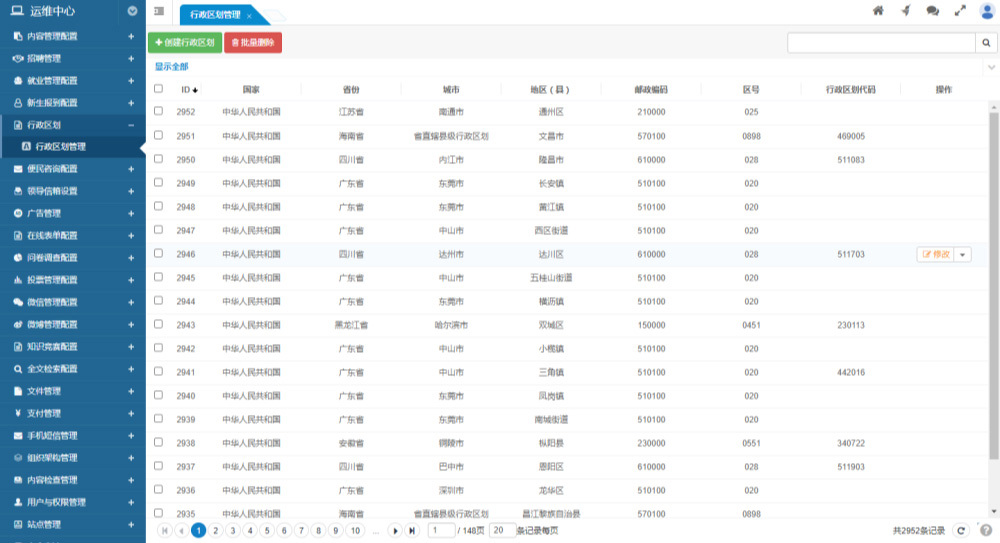 支持行政區(qū)劃代碼的添加、刪除、修改、查看等功能。