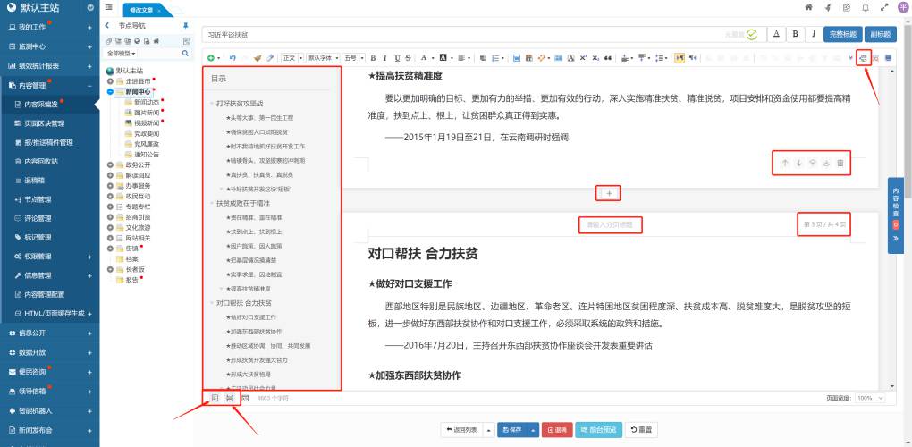 基于標準模式,增加了內(nèi)容分頁和內(nèi)容大綱(目錄)功能,主要用于文章內(nèi)容編輯。