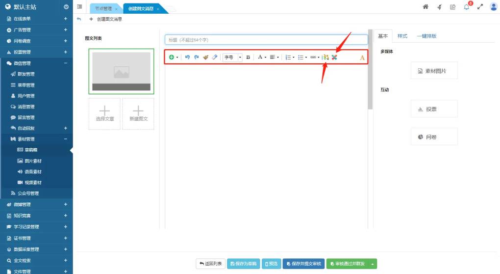 專為微信發(fā)布內(nèi)容編輯設計,增加了調(diào)用第三方編輯工具的功能按鈕。
