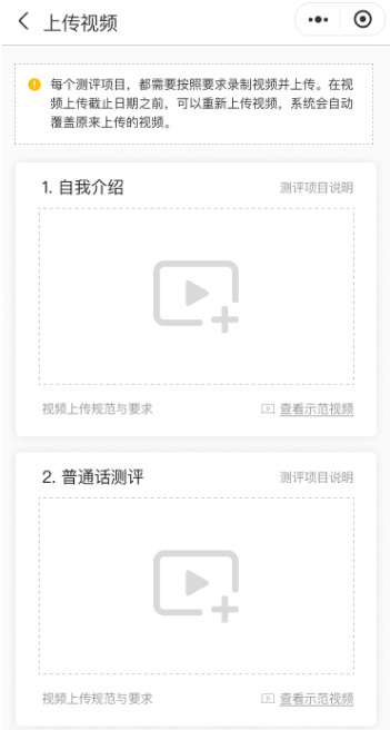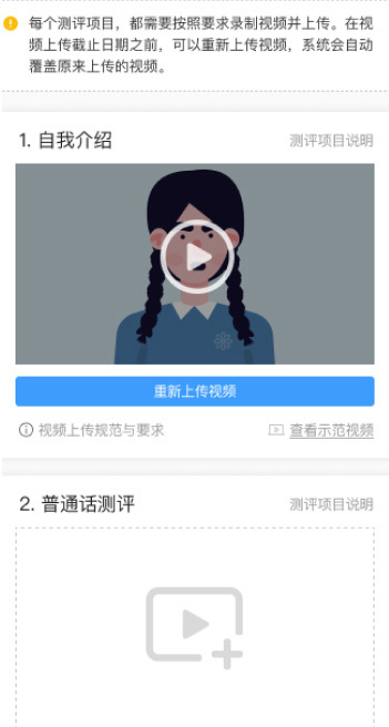 考生的報(bào)名通過審核后,進(jìn)入視頻上傳階段,考生需要在規(guī)定時(shí)間內(nèi)按照要求上傳視頻。