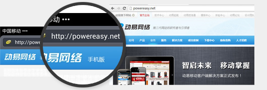 而動易多屏優(yōu)化技術(shù)是跨pc和移動設(shè)備的技術(shù),可實時維護、用戶無需頻繁下載,只需要打開所需網(wǎng)址,網(wǎng)站便可自動根據(jù)用戶設(shè)備進行界面的匹配。