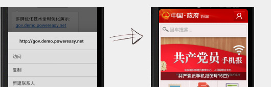 現(xiàn)如今,我們越來越多的會通過短信、微信或者郵件分享一個產(chǎn)品鏈接、一條有趣的新聞,而當我們點擊這些鏈接打開時,如果是其他技術(shù),在手機中顯示的就是原pc界面,而多屏優(yōu)化后就顯示專為手機優(yōu)化的界面,實現(xiàn)全時優(yōu)化。