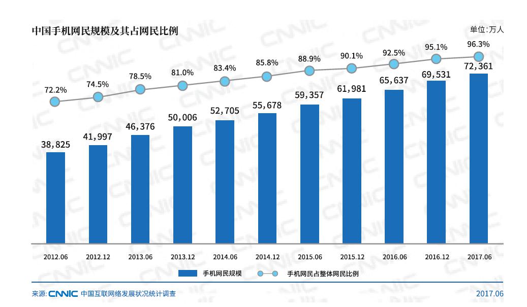 《第32次中國互聯(lián)網(wǎng)絡(luò)發(fā)展狀況統(tǒng)計報告》顯示,截至2013年6月底,我國手機網(wǎng)民數(shù)量為4.6億,較2012年底增加約4379萬人,半年時間增加4%,與此同時,我國網(wǎng)民規(guī)模達到5.91億,半年共計新增網(wǎng)民2656萬人,互聯(lián)網(wǎng)普及率為44.1% ,僅提升了2.0個百分點。保持了2012初,手機網(wǎng)民增幅遠超網(wǎng)民整體增幅的態(tài)勢。