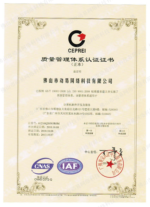 動易順利通過ISO9001:2008質(zhì)量體系認證