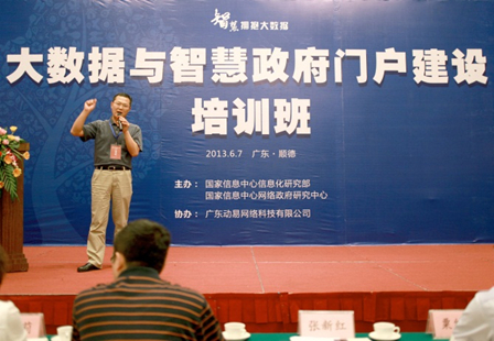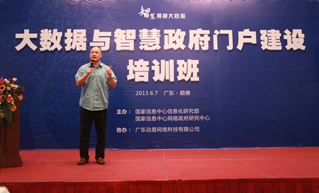 2013年6月7日,由國家信息中心信息化研究部、國家信息中心網(wǎng)絡(luò)政府研究中心(簡稱網(wǎng)研中心)主辦,廣東動易軟件股份有限公司承辦的“大數(shù)據(jù)與智慧政府門戶建設(shè)”培訓(xùn)班在廣東順德舉行。來自廣東、湖南、貴州等地區(qū)60個市縣及部門的政府網(wǎng)站管理人員及動易公司相關(guān)負(fù)責(zé)人共140人參加了本次培訓(xùn)。國家信息中心信息化研究部主任、網(wǎng)研中心主任張新紅、國家信息中心信息化研究部副主任、網(wǎng)研中心副主任于施洋,以及網(wǎng)研中心副主任續(xù)揚,網(wǎng)研中心培訓(xùn)認(rèn)證部主任崔巖莉,咨詢部主任王建冬博士,廣東動易軟件股份有限公司總裁粟維勝先生等相關(guān)負(fù)責(zé)同志參加了此次會議。會議由網(wǎng)研中心副主任續(xù)揚主持。
