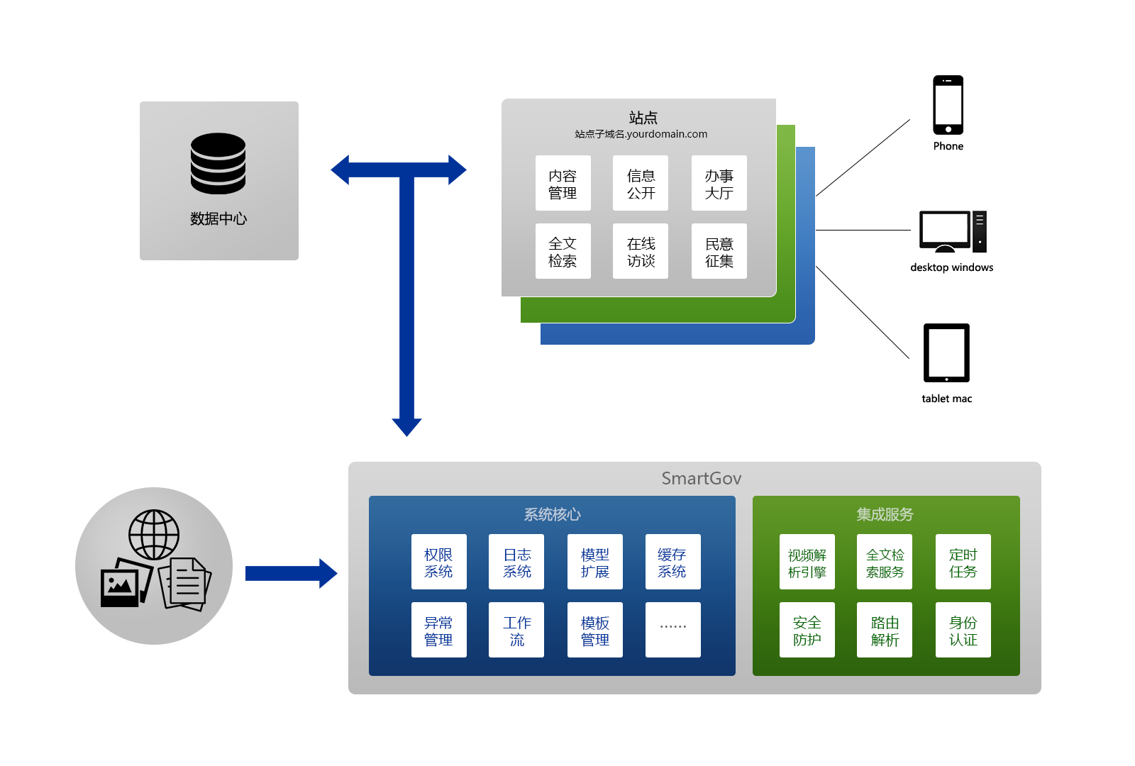全新架構(gòu)的動(dòng)易SiteAzure響應(yīng)并完全符合國辦《國務(wù)院辦公廳關(guān)于加強(qiáng)政府網(wǎng)站信息內(nèi)容建設(shè)的意見》文件精神,對(duì)網(wǎng)站集群化與集約化進(jìn)行了完美的詮釋,是構(gòu)建新一代政府門戶網(wǎng)站集群的最佳解決方案。
