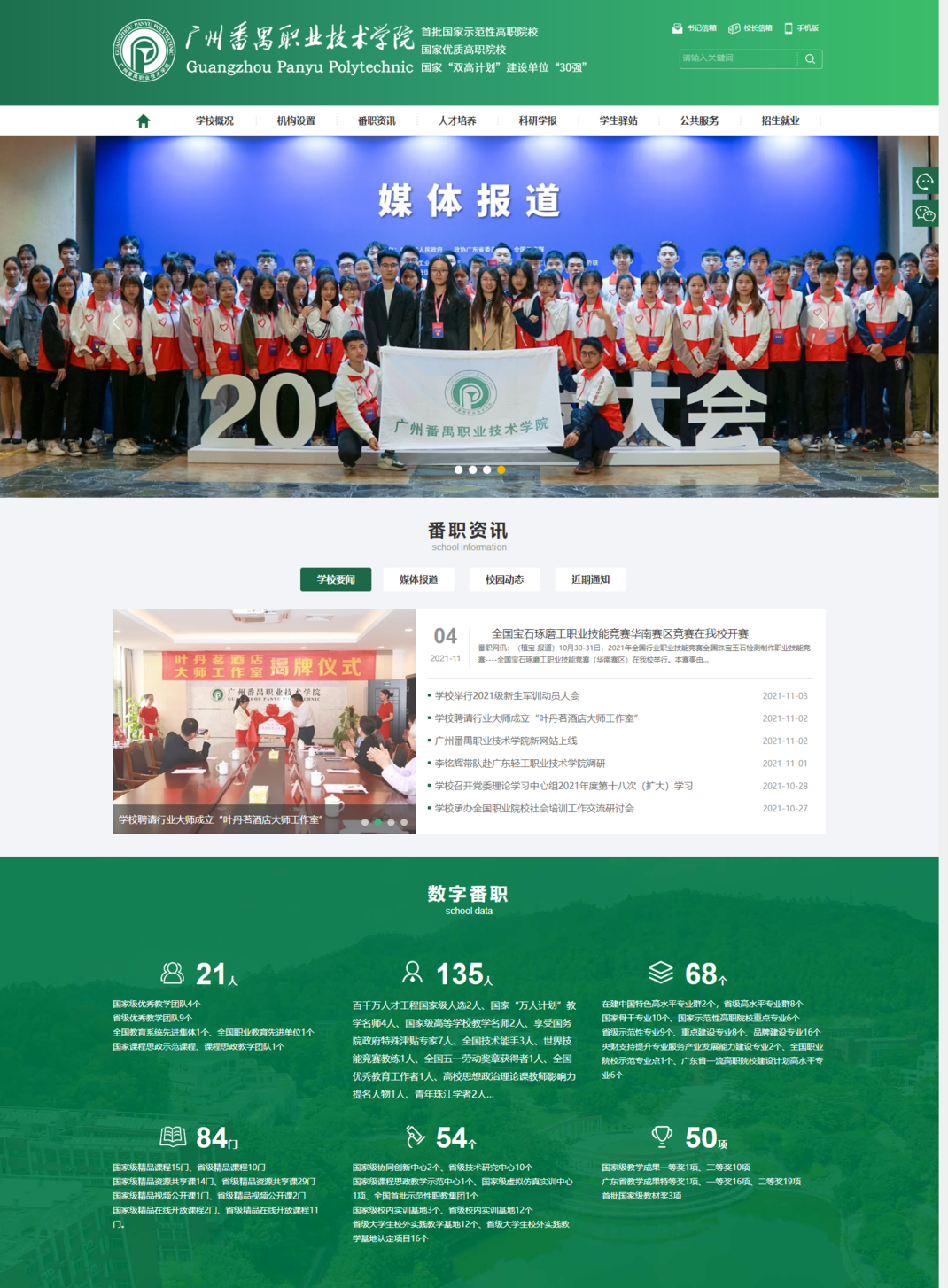 全新的頁(yè)面設(shè)計(jì)緊跟時(shí)代前沿,延續(xù)學(xué)院辦學(xué)理念。新網(wǎng)站沿用綠色作為主色調(diào),美觀大方,體現(xiàn)學(xué)校特色和時(shí)代氣息。