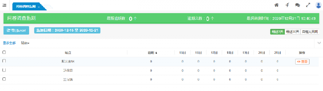 按站點(diǎn)顯示各站點(diǎn)的問卷調(diào)查活動(dòng)開展情況的監(jiān)測結(jié)果。