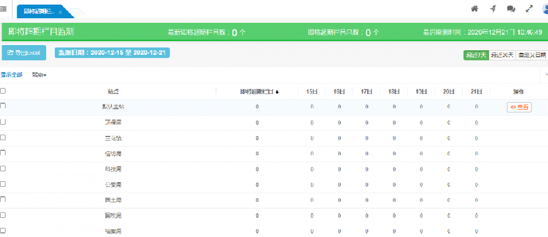 按站點(diǎn)顯示各站點(diǎn)的即將超期欄目監(jiān)測情況。