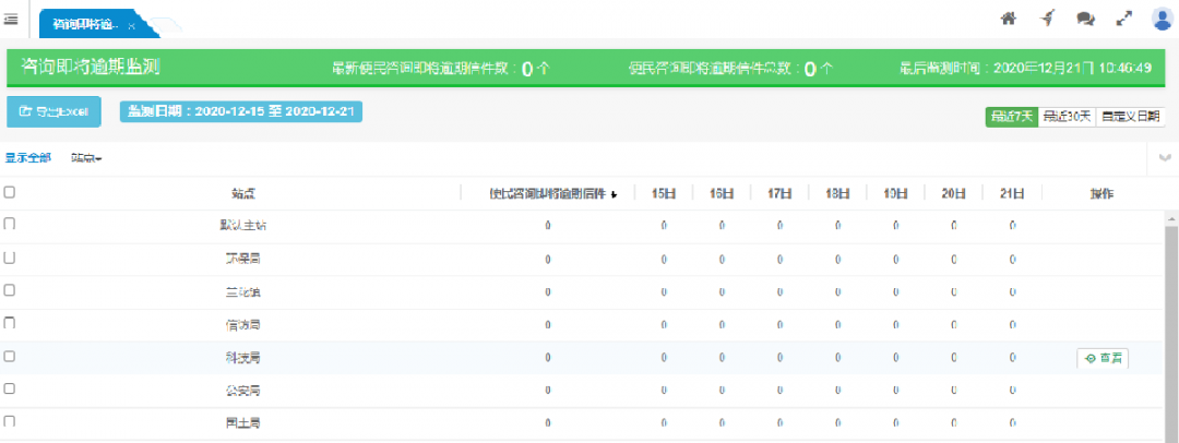 按站點(diǎn)顯示各站點(diǎn)的便民咨詢逾期辦理情況的監(jiān)測結(jié)果。