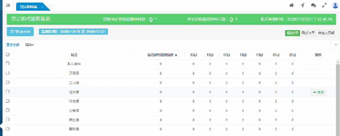 按站點(diǎn)顯示各站點(diǎn)的網(wǎng)上信訪逾期辦結(jié)情況的監(jiān)測結(jié)果。