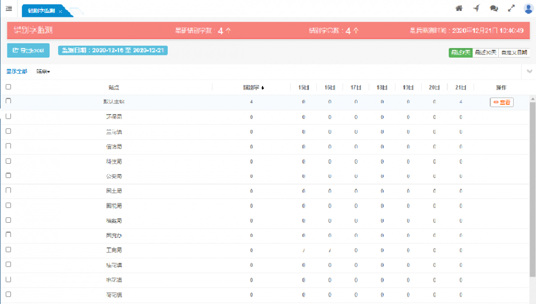 按站點(diǎn)顯示各站點(diǎn)的錯(cuò)別字監(jiān)測情況。