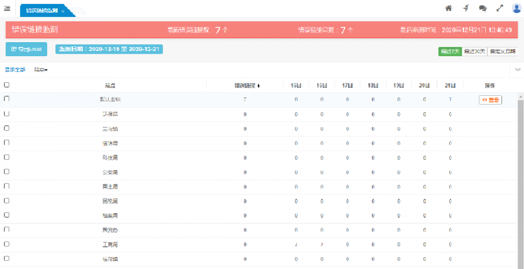 按站點(diǎn)顯示各站點(diǎn)的錯(cuò)誤鏈接監(jiān)測情況。