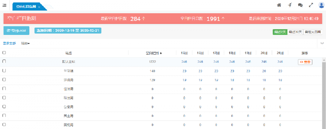 按站點(diǎn)顯示各站點(diǎn)的空白欄目監(jiān)測情況。