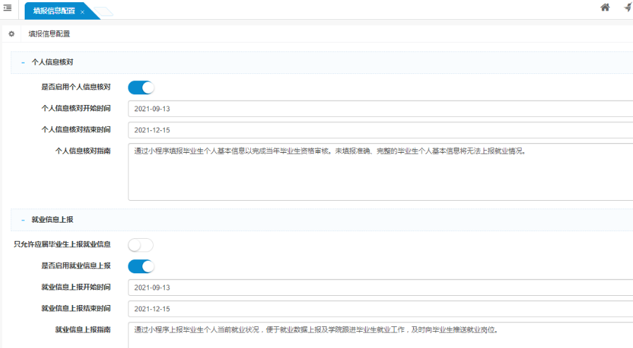支持個(gè)人基本信息核對及信息上報(bào)的相關(guān)配置。