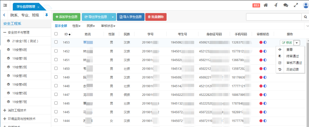 畢業(yè)生在小程序中對本人信息進(jìn)行核對,由管理員進(jìn)行數(shù)據(jù)初審及終審后,可將畢業(yè)生數(shù)據(jù)導(dǎo)出Excel表,并導(dǎo)入到教育廳或教育部的系統(tǒng)。