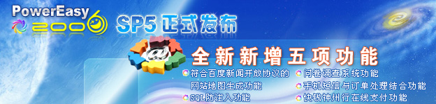 追求產(chǎn)品的盡善盡美是我們的共同愿望,打造超一流的網(wǎng)站管理系統(tǒng)是我們的共同目標。經(jīng)過動易開發(fā)人員認真的收集、整理、修復(fù)和測試,SP5已經(jīng)修復(fù)了SP4以來目前已知的40多項大、小BUG,有多處更新和改動并經(jīng)過多方面運行測試,系統(tǒng)更趨穩(wěn)定;集成了SP4后的3次安全更新和SQL防注入插件,系統(tǒng)更加安全;新增符合百度互聯(lián)網(wǎng)新聞開放協(xié)議的網(wǎng)站地圖生成功能、SQL防注入功能、問卷調(diào)查系統(tǒng)功能、手機短信與訂單處理結(jié)合功能、快錢神州行在線支付功能等新功能……