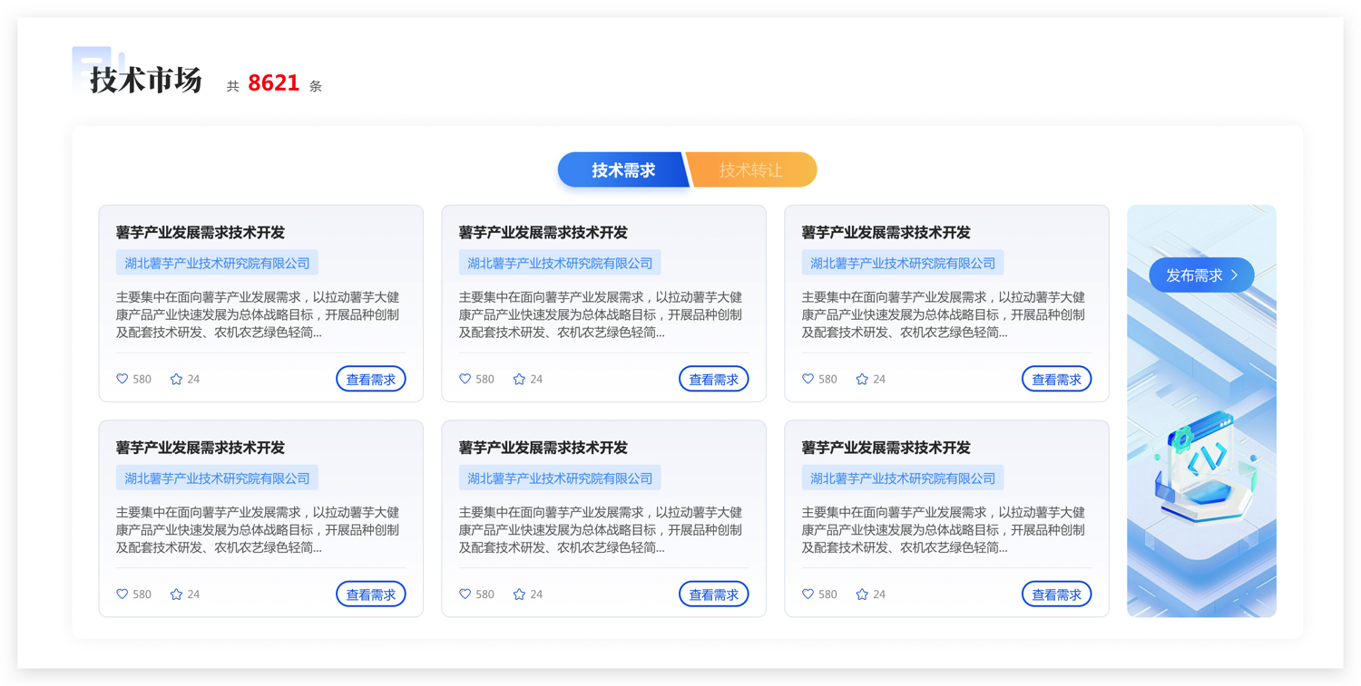 針對技術(shù)成果與項目需求的對接,平臺搭建了類似“58同城”的供求信息子站:
