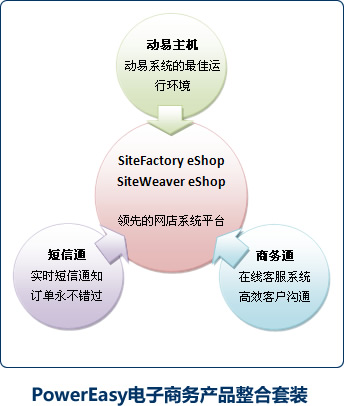 | 動易電子商務(wù)產(chǎn)品整合方案由四大產(chǎn)品組成,分別是:動易電子商務(wù)軟件系統(tǒng)、動易短信通、動易主機(jī)、網(wǎng)站商務(wù)通。他們構(gòu)成了動易電子商務(wù)產(chǎn)品整合方案的有機(jī)整體。 1、動易eShop電子商務(wù)軟件:是整個方案的核心,強(qiáng)大的企業(yè)級系統(tǒng)功能平臺能支持各類B2C業(yè)務(wù)運(yùn)營。 2、動易主機(jī):作為動易軟件的最佳運(yùn)行伙伴,能提供給客戶IT業(yè)務(wù)最優(yōu)的運(yùn)行平臺環(huán)境支持。 3、動易短信通:與動易軟件無縫銜接,在動易軟件中內(nèi)置強(qiáng)大的短信通功能,包括有:訂單手機(jī)通知商家、已收款通知,顧客發(fā)貨通知等,更可發(fā)送最新商品資訊、促銷打折信息給網(wǎng)店會員,還可進(jìn)行會員節(jié)日生日問候。 4、網(wǎng)站商務(wù)通:在線客服軟件。是一個極為強(qiáng)大的網(wǎng)店商家與網(wǎng)店顧客的在線溝通工具。通過商務(wù)通,商家可以與網(wǎng)店訪客進(jìn)行主動溝通銷售,提供更加時效的銷售咨詢服務(wù)。 |