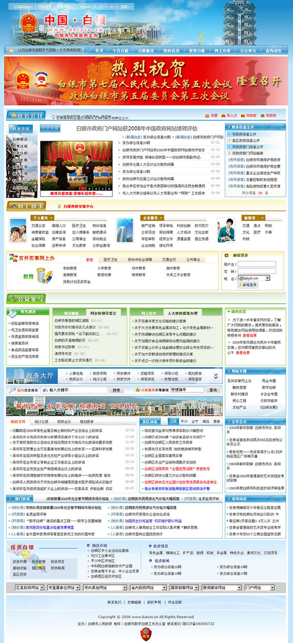 白銀市政府門戶網(wǎng)一改“紅遍整站”的政府網(wǎng)站形象,由動易提供用戶體驗(yàn)研究,幫助白銀市政府網(wǎng)站對前臺瀏覽及操作過程中,涉及到的界面、服務(wù)流程及感受等進(jìn)行UI優(yōu)化。提升白銀政府新形象。