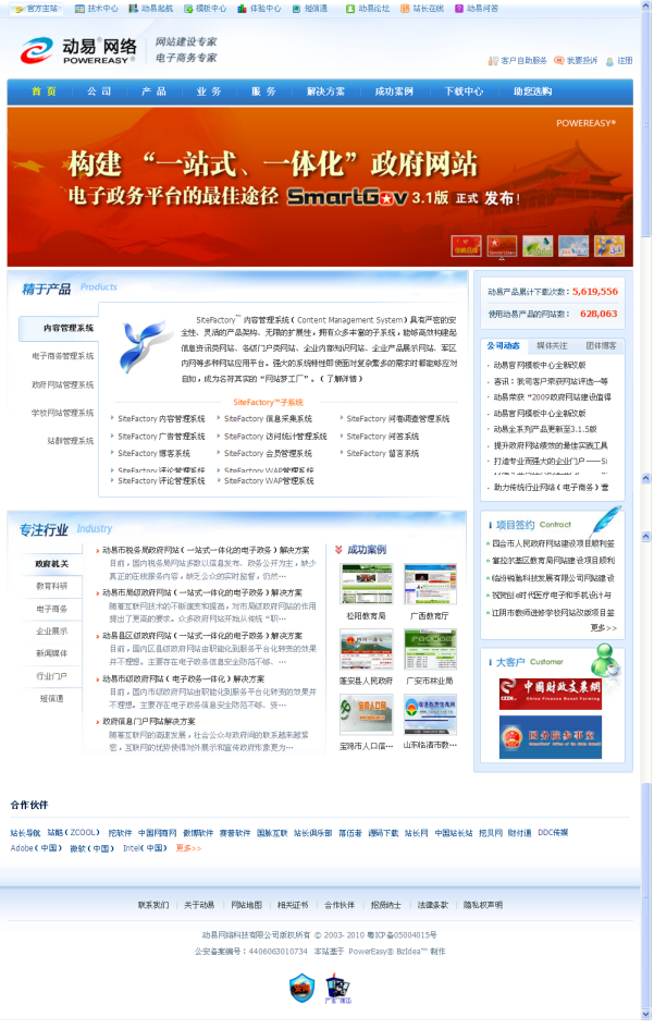 此外,“精于產(chǎn)品 專注行業(yè)”也正是動(dòng)易公司的全新定位。隨著公司的不斷發(fā)展和產(chǎn)品的進(jìn)一步完善和成熟,公司逐漸形成并提煉出了“精于產(chǎn)品 專注行業(yè)”這一明確定位,而這正是動(dòng)易官網(wǎng)全面改版的依據(jù)和背景。七年來,動(dòng)易正是秉持著“嚴(yán)謹(jǐn)務(wù)實(shí) 精益求精”的產(chǎn)品研發(fā)理念,獨(dú)立研發(fā)出了SiteWeaver 內(nèi)容管理系統(tǒng)、SiteFactory 內(nèi)容管理系統(tǒng)、BizIdea 企業(yè)電子商務(wù)系統(tǒng)等成熟的核心基礎(chǔ)產(chǎn)品,并在此基礎(chǔ)上針對不同行業(yè)推出了SmartGov 政府網(wǎng)站管理系統(tǒng)、SmartSchool 學(xué)校網(wǎng)站管理系統(tǒng)、SiteGroup 站群管理系統(tǒng)等行業(yè)性軟件產(chǎn)品及各級政府及學(xué)校網(wǎng)站解決方案。而今后動(dòng)易也將更專注于其他更多細(xì)分行業(yè)的研究,以為更多的行業(yè)用戶提供網(wǎng)站建設(shè)最佳解決方案。
