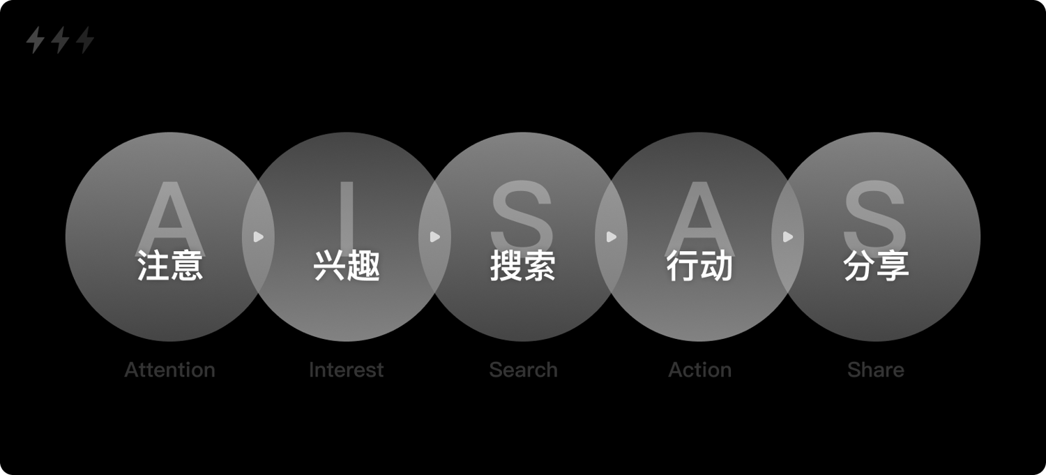 當互聯(lián)網作為全新的媒介進入我們的生活,消費者行為模式開始重新解構。2005年,日本電通廣告集團提出了全新模型:AISAS。模型中添加了兩個來自互聯(lián)網的行為,搜索和分享,這也正是互聯(lián)網造成消費者行為改變的重要原因。