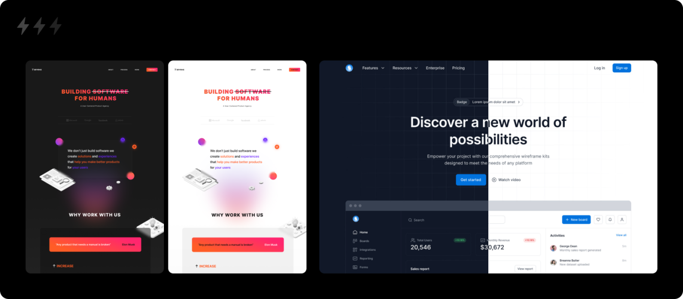 1. 深淺主題:首先確定深色主題還是淺色主題。淺色主題的文字對比度較高,適合需要呈現(xiàn)大量內容的的網站。淺色的風格適配性也很強。深色主題則能更好地凸顯色彩鮮艷的內容或圖形,傳遞出時尚、現(xiàn)代、前沿的感覺。主題色調的選擇并非二選一,有時深淺交錯的呈現(xiàn)形式能夠結合兩者的優(yōu)點,視覺體驗更佳。