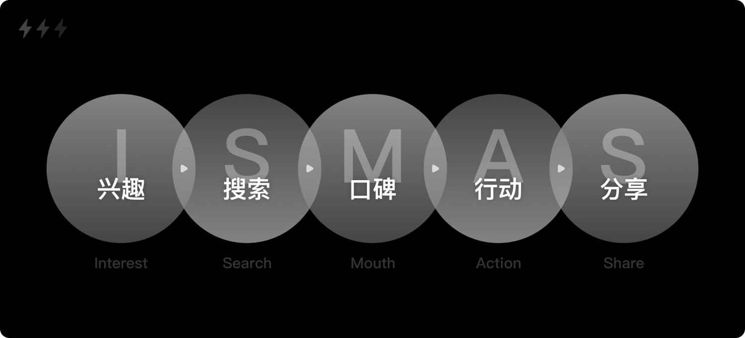 2013年,北京大學劉德寰教授基于AIDMA和AISAS提出了一個新的行為模型:ISMAS,該模型指向了移動互聯(lián)網時代的一個重要的購買行為變化:口碑。將營銷的首要任務從吸引注意轉變?yōu)楫a生興趣。