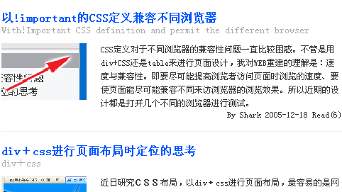 如果定義為“clear : both;”則本容器中的一行內(nèi)不允許其他對象有浮動(dòng)對象;如果定義為“clear : left;”則本容器中的左側(cè)不允許其他對象有浮動(dòng)對象。象“#ArticlePic”(縮略圖定義),其定義一般不能為“clear : right;”,否則文字就不能實(shí)現(xiàn)右環(huán)繞了。