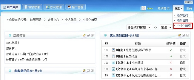2.會(huì)員中心支持個(gè)性化首頁(yè)