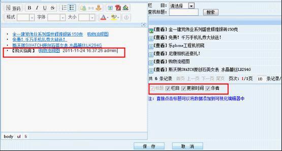 選擇需要擴充的信息屬性(如作者、欄目名、更新時間),拖入編輯區(qū)域后會自動顯示信息的相關(guān)屬性,如下方圖所示: