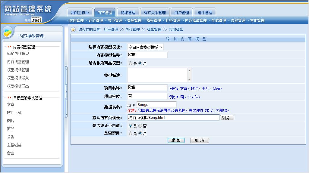 添加新內(nèi)容模型