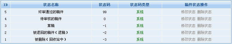 這樣,當(dāng)用戶投稿后,稿件將自動(dòng)變?yōu)椤按幚怼?,然后出現(xiàn)在編輯可見的列表中,當(dāng)編輯打開一篇稿件,即可設(shè)置“審閱中”狀態(tài),編輯審閱完成后,根據(jù)情況使其通過或退稿。通過的文章將出現(xiàn)在管理員可見的列表中,待管理員進(jìn)行生成操作后,文章狀態(tài)自動(dòng)變?yōu)椤耙寻l(fā)布”。