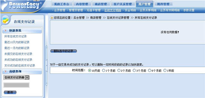 在網(wǎng)店中,在線的支付方式是最為普遍的支付方式,大多顧客都會(huì)選擇和使用此種方式來(lái)支付,于是在動(dòng)易eShop2007用戶管理模塊中單獨(dú)設(shè)定了“在線支付明細(xì)”功能。