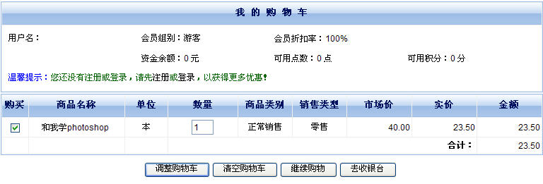 目前,相當部分的網(wǎng)店系統(tǒng)采用的購物模式都是:注冊-》登錄-》購物-》確認訂單-》查詢訂單,而對游客的購買行為不支持或友好度很低。而其實游客也是網(wǎng)店重要的客戶資源,我們正在努力針對游客的購買行為做出更多的功能設(shè)計。