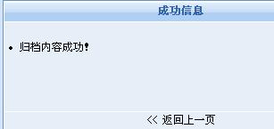 然后選擇該頁(yè)面下方的“歸檔內(nèi)容”按鈕,點(diǎn)擊后就會(huì)看到“歸檔內(nèi)容成功!”的提示: