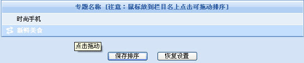 2、專題類別\專題排序:可進行專題類別的排序,以決定各專題顯示的先后順序,讓商家可自行調(diào)整各類專題的重要性排序。在排序操作上,動易SF eShop1.1獨具匠心地引入了Ajax技術(shù)支持拖拽排序,極為方便。