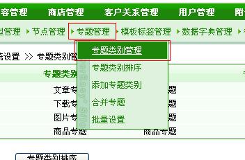 首先我們通過頂部導(dǎo)航,進入“系統(tǒng)設(shè)置”——“專題管理”并點擊進入“專題類別管理”: