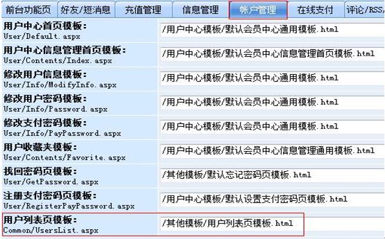 點擊圖片中的紅色框?qū)B接到:虛擬路徑+Common/UsersList.aspx。如要更換模板,則在后臺管理 >> 系統(tǒng)設(shè)置 >> 模板標(biāo)簽管理 >> 動態(tài)頁模板配置
