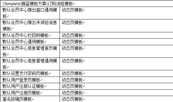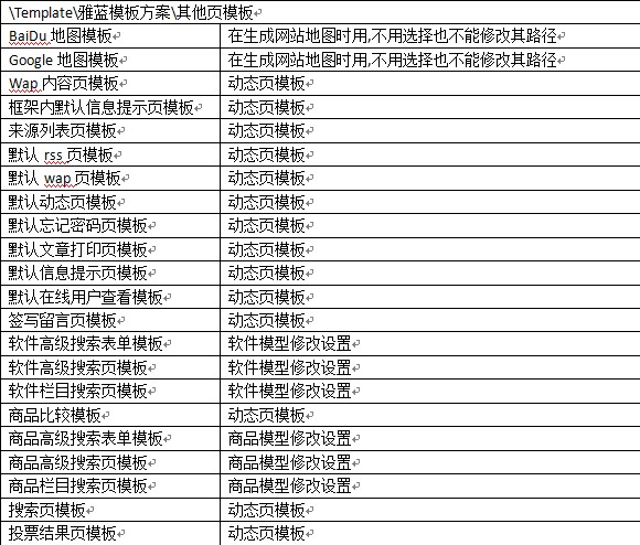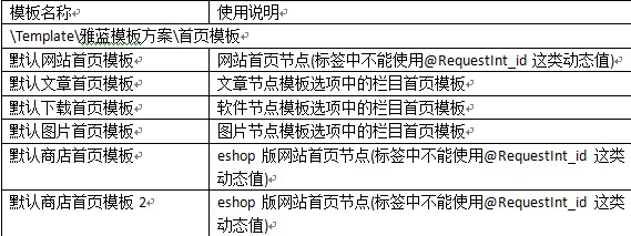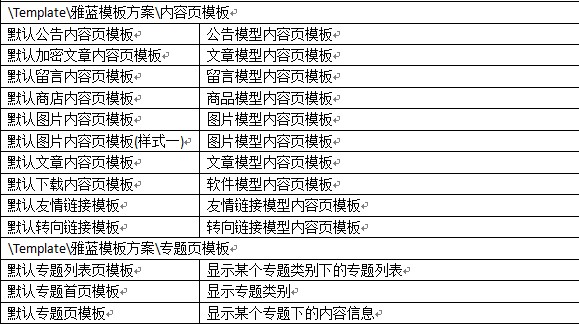 附默認(rèn)雅藍(lán)模板方案中各模板的使用說明:
