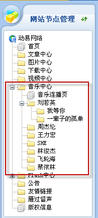 系統(tǒng)也內(nèi)置了音樂節(jié)點(diǎn),可以在音樂模型節(jié)點(diǎn)下通過添加子節(jié)點(diǎn)或者建立專題的方式來實(shí)現(xiàn)歌手\歌曲專輯分類功能。