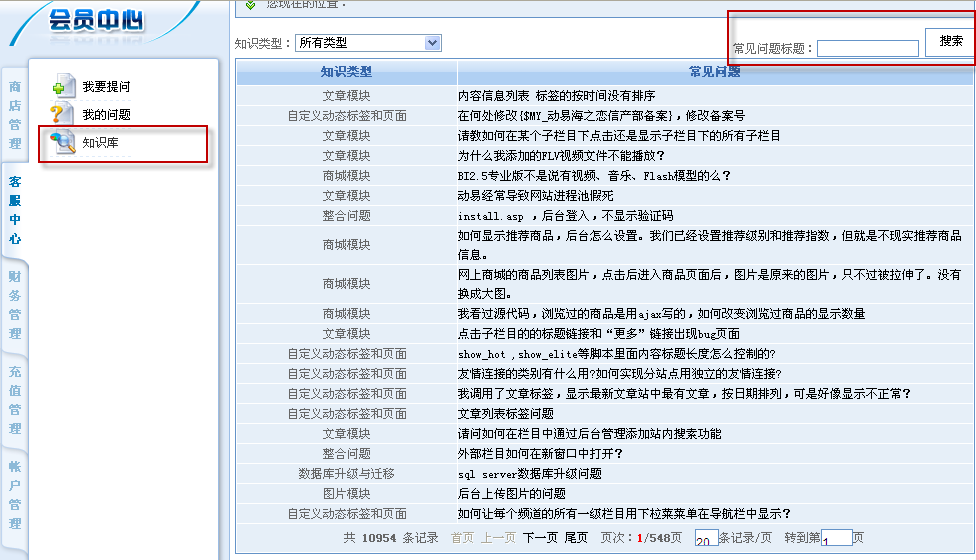 用戶可在客服中心里查看及查詢到所有用戶提問并已解決的所有問題,這樣用戶提問得越多,知識庫便也越大,也可以更好地對用戶起到幫助的作用。用戶在提問前可以先在知識庫里查找過沒有相同問題答案后才提交問題,這也大為節(jié)省了管理員對重復(fù)問題進行答復(fù)所花費的成本。